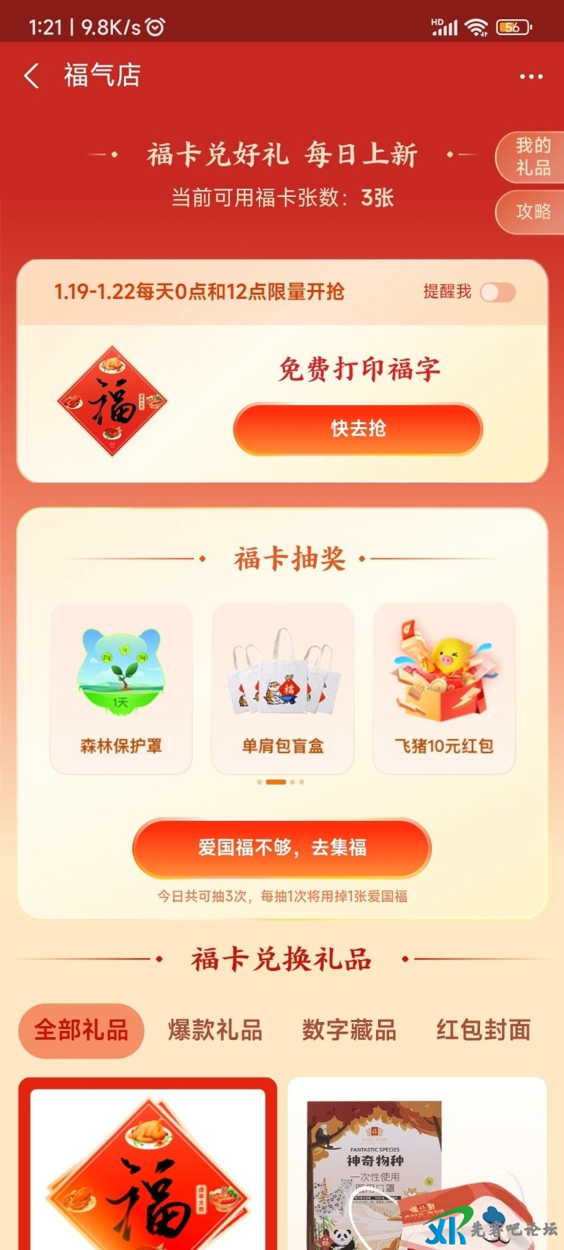支付宝-打开集五福-我的福卡-福气店-免费打印福字-立即抢购 都麻利点,人多了,到后面就只能踩点(0点和12点)抢购了
